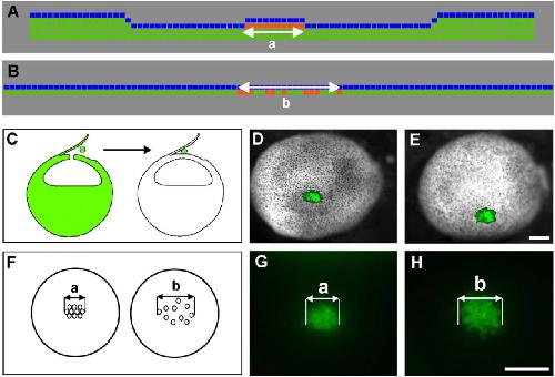 homochronic graft of deep cells from an alexa-488 dextran-labeled donor embryo was implanted into an unlabeled host embryo late in stage 8/early stage 9 (C).