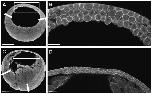 magnification images of similar regions of the BCR to those boxed in A and C, cell outlines visualized using antisera to C-cadherin (scale bars = 300 Am in A