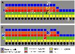 intercalates between the two green cells on either side of the black arrow, (2) all of the green cells to the left of the intercalated red cell are displaced one cell