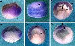 Fig. 1. Smurf1 transcripts are enriched in the dorsal tissues. (A, Aâ²) Lateral view and sagittal section of early gastrula, stage10 (animal pole up, dorsal side at the right, asterisks mark the dorsal blastopore lip). (B, Bâ²) Early neurula, stage 14. (C, Câ²) Late neurula, stage 20. In panels B, Bâ² and C, anterior is at the right, (Bâ², C) sagittal sections, (Câ²) transversal section. Sâsomites, smâsomitogenic mesoderm, black arrowheadsâneural folds, black arrowânotochord, white arrowâprechordal plate. |
