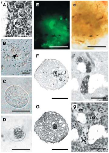 from juvenile testes. (A, a) Section of juvenile testis. (B)