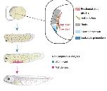 Fig. 8. Induction and distribution of myeloid cells derived from the anterior ventral (AV) region of the neurula embryo. At the early neurula stage wnt inhibitors, such as dkk1, frzb-1 and crescent, were expressed in the prechordal plate and anterior endoderm (diagonal area). A high dose of dkk1 induces the heart mesoderm, while a low dose of dkk1 induces myeloid cells. The differentiated leukocytes start to migrate toward the posterior area at the tailbud stage. At the swimming tadpole stage, ventral blood island (VBI)- derived leukocytes appear, in addition to AV-derived leukocytes, and the former become a major population at the feeding tadpole stage. |