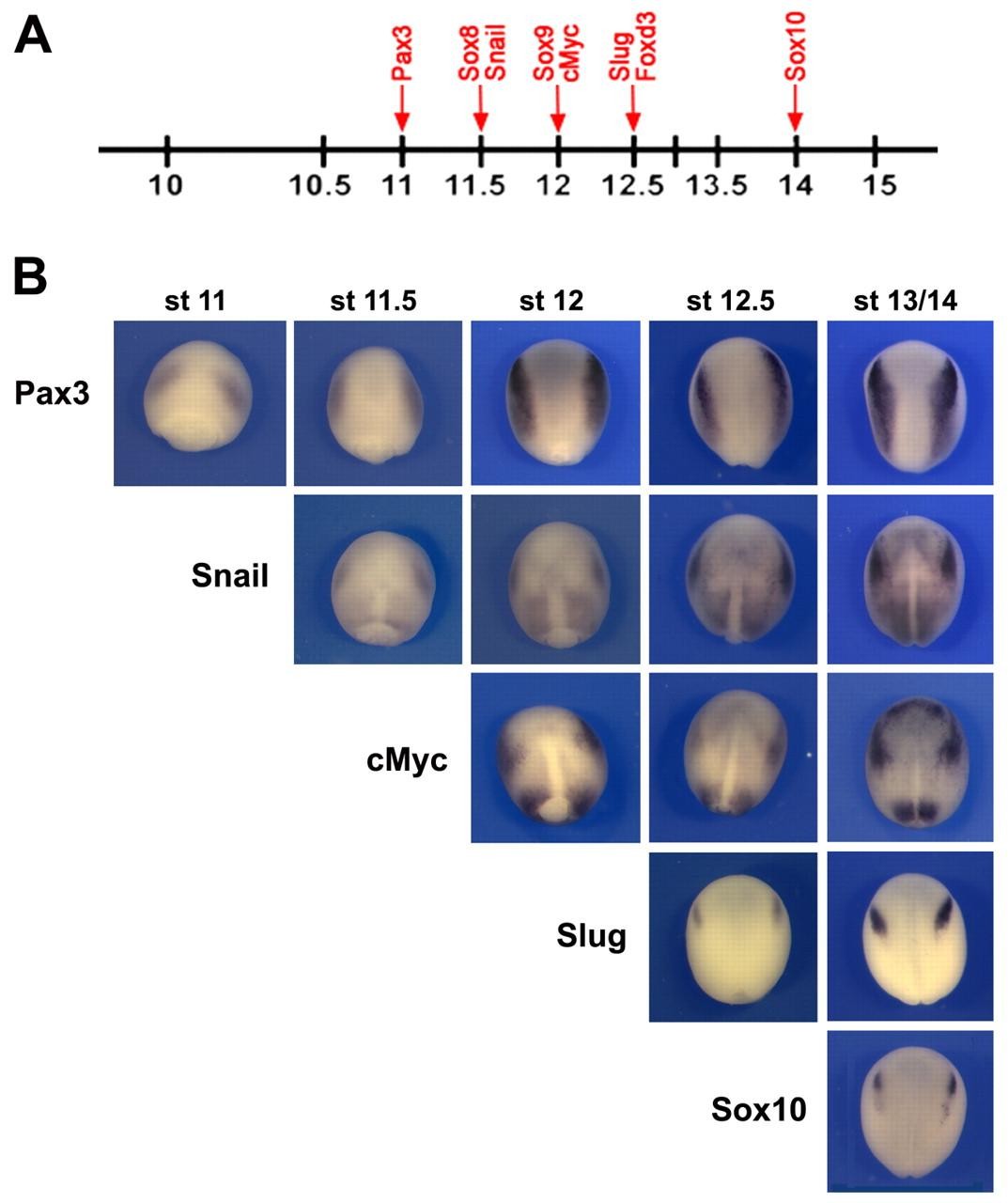 Genes referenced: myc pax3 snai1 snai2 sox10 sox13 sox2 sox8 sox9