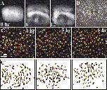 Fig. 4. Cell movement: from the marginal zone into the dorsal ridge. (A) Frames from a timelapse sequence of a single explant expressing a nuclear localizing GFP. Each frame is a montage of four images collected simultaneously from four quadrants of the explant. (B) A digitally enhanced closeup of the marginal zone showing the location of individual nuclei. (C) Frames from a timelapse sequence shown in the inset (dashed line in B) at 2 h intervals. Thirty-minute trajectories of cell nuclei in explants are overlaid on an image of nuclei positions. Green indicates the current position of the nuclei, yellow indicates positions 6 and 12 min earlier, and red indicated positions 18, 24, and 30 min earlier. (C0 ) The same frames as shown in C showing only the 30 min trajectories of nuclei. All panels are en face views with animal up and vegetal down.