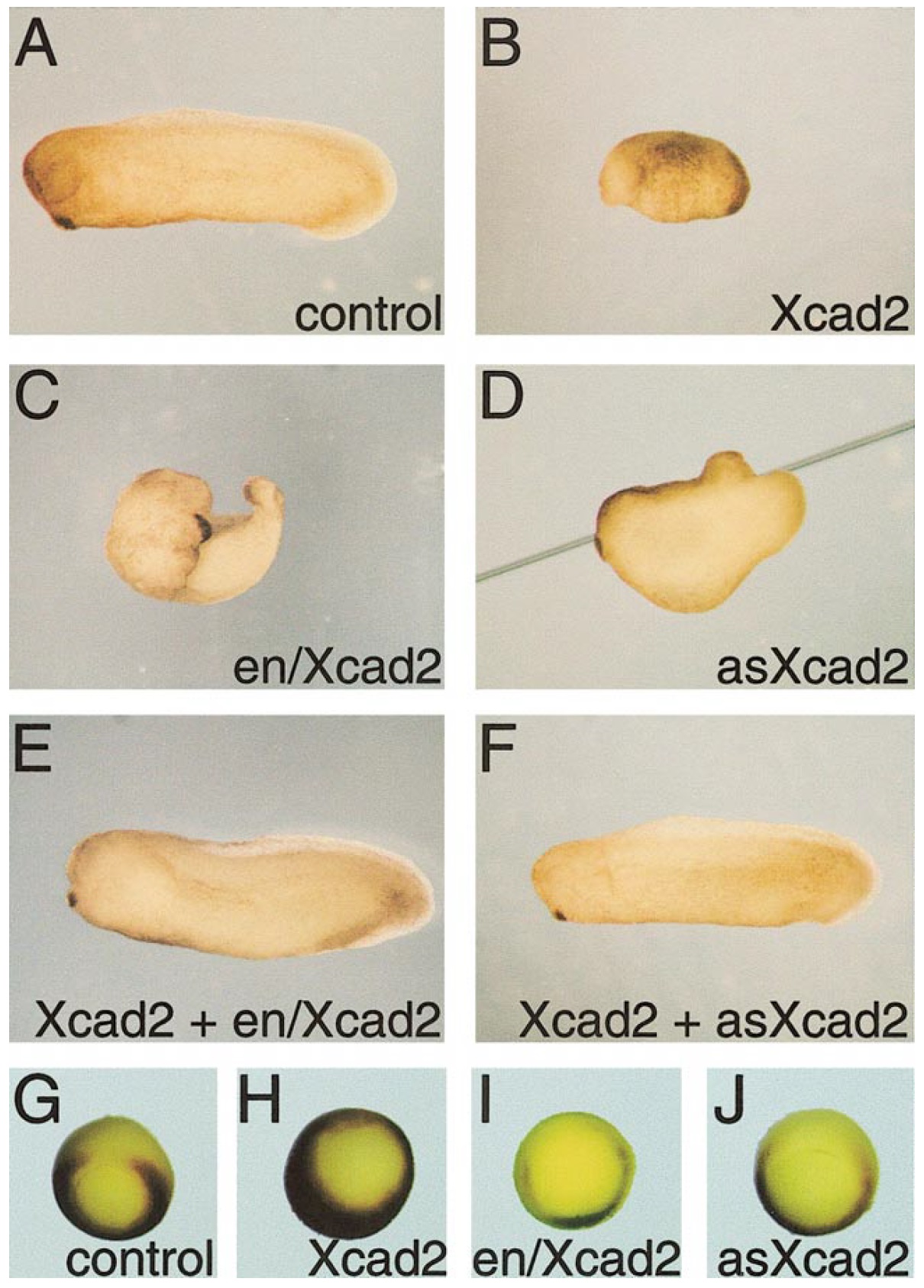 embryos. (E) Coinjection of Xcad2 RNA and en/Xcad2 mRNA results in the phenotypic rescue of the effects of both constructs. (F) Injection of