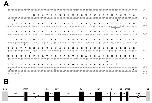 Figure 3. X. tropicalis nucleoplasmin gene. A) Nucleotide sequence and corresponding protein sequence of a nucleoplasmin cDNA from X. tropicalis [GenBank: NM_001016938]. The arrow heads and lines indicate the sites of insertion of the different introns. B) Schematic representation of the organization and structure of the gene. Exons are schematically represented by solid boxes, with black representing translated regions and grey representing untranslated regions. Introns are indicated by black lines. The numbers indicate the basepair size of the regions below them.