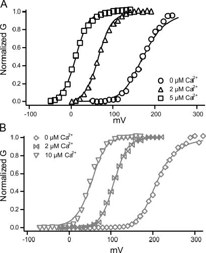 Horrigan, Allosteric voltage gating of potassium channels II. Mslo channel gating charge movement in the absence of Ca(2+). 1999, Pubmed