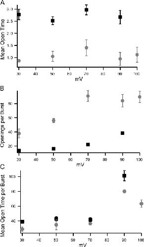 Magleby, Burst kinetics of single calcium-activated potassium channels in cultured rat muscle. 1983, Pubmed