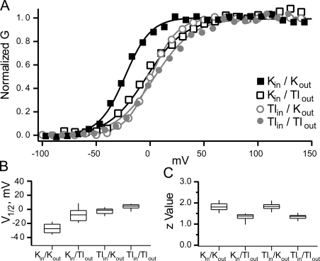 Swenson, K+ channels close more slowly in the presence of external K+ and Rb+. 1981, Pubmed