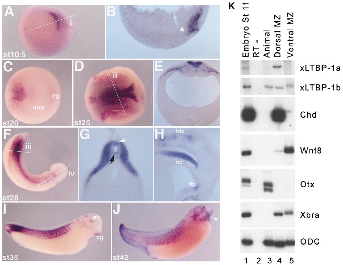 The latent-TGFbeta-binding-protein-1 (LTBP-1) is expressed in the organizer and regulates nodal and activin signaling.