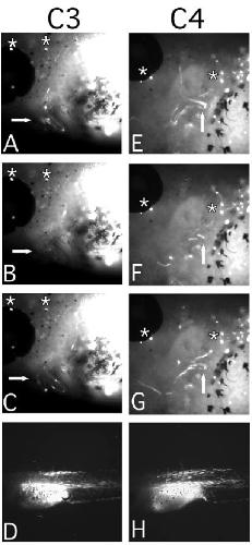 retina is to the upper left in all images. (AâD) C3 progeny. (EâH) C4