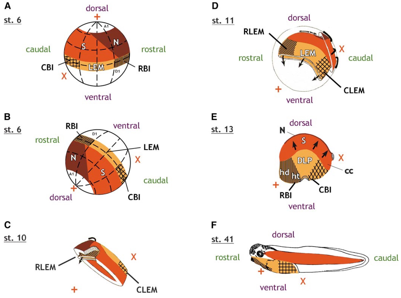 discussion. All tissues in (A–E) are prospective as no histological differentiation has occurred. (C–E) Modified from Keller (1991) and Lane