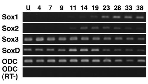 Fig. 2. Temporal expressions of Sox1–3 and SoxD during Xenopus