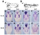 was expressed strongly in the epidermis of the optic vesicle (E, arrowhead). At stage 35, Sox1 was expressed in the diencephalon and was weakly expressed