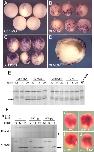Fig. 9. Apoptosis in embryos injected with NRH1 antisense morpholino oligonucleotides is delayed or prevented by injection of RNA encoding active forms of the small GTPases Rho, Rac or Cdc42. (A) Embryos were injected at the one-cell stage with 80 ng of a control MO or of Xl MOb1 as indicated, and at the 2- to 4-cell stage, they were injected at four equatorial positions with RNA encoding constitutively active forms of Rho, Rac or Cdc42 (5, 50 and 30 pg per embryo, respectively). They were cultured to the indicated stages, and extracts were assayed for the ability to cleave tPARP. Note that the onset of caspase activity is delayed by active forms of all three small GTPases. With the exception of the experiment involving Rac, these experiments have been carried out twice, with the same results both times. (D). Inhibition of the planar cell polarity pathway, and the resulting disruption of gastrulation, does not cause dramatic apoptosis. Embryos were injected at the one-cell stage with 80 ng of a control MO (D), or with 80 ng of Xl MOb1 (E). In panel F, 3.6 ng RNA encoding Dsh-DEP+, a dose that is sufficient severely to disrupt gastrulation, was delivered by four equatorial injections made at the 2- to 4-cell stage. They were cultured to stage 14 and subjected to whole-mount TUNEL staining. Note that, in contrast to embryos injected with Xl MOb1 (E), little apoptosis occurs in embryos injected with RNA encoding Dsh-DEP+ (F). Note that the experiments in panels D were carried out at the same time as those illustrated in Figs. 8A, B, and the control embryos in Fig. 8A and panel D are identical. |