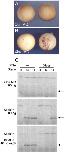 Fig. 8. Apoptosis in embryos injected with NRH1 antisense morpholino oligonucleotides is delayed or prevented by injection of RNA encoding Xbra. (A, B) Inhibition of Xbra function by injection of a specific MO causes limited apoptosis. (A) TUNEL staining of embryos injected at the one-cell stage with 80 ng control MO and cultured to stage 14. Note the absence of apoptosis. (B) TUNEL staining of embryos injected with 80 ng Xbra MO. Note apoptotic cells. (C) Injection of RNA encoding Xbra delays or rescues apoptosis induced by NRH1 MOs. Embryos were injected at the one-cell stage with 80 ng of a control MO or with Xl MOb1 or Xl MOa1 as indicated. They then received, at the 2- cell stage, a total of 50 pg Xbra RNA injected at four positions in the equatorial region. Embryos were cultured for equivalent times to the indicated stages, and extracts were assayed for the ability to cleave tPARP. Note that the onset of caspase activity is delayed or prevented by Xbra. This experiment has been carried out twice, with the same result both times. |