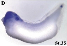 tbx6r (T-box 6 related) gene expression in Xenopus laevis embryos, NF stage 35, as assayed by in situ hybridization, lateral view, anteriorleft, dorsal up.