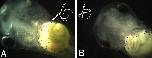 Fig. 9. BDM treatment can randomize cardiac and gutleft-right patterning. (A) An untreated stage-47 tadpole displays normal situs of heart and gut coiling. (B) A tadpole exposed to 20 mmol/l BDM for 20 minutes during the first cell cycle displays reversed cardiac and gut organizations, with otherwise normal body patterning. Insets show outlines of normal (A) and reversed (B) cardiac outflow tract and ventricle.