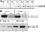 Fig. 6. XRb is predominantly hyperphosphorylated during Xenopus embryogenesis. (A) Extracts made from embryos at a range of stages between 1 and 30 were either untreated (−) or treated with lambda phosphatase (λ) and immunoblotted with anti-Rb antibody (XZ160). Endogenous Rb protein is detected at all stages between 8 and 30 in its hyperphosphorylated form (upper bands). (B) Extracts made from embryos at stage 22 (30 μg total protein) or stage 50 (50 μg total protein) were either untreated (−) or treated with lambda phosphatase (λ) and immunoblotted with anti-Rb antibody (XZ160). pXRb was predominantly hyperphosphorylated at stage 22 but exists in hyper- and hypophosphorylated forms at stage 50. (C) Extracts made from uninjected or XRb mRNA (2 ng)-injected embryos at stage 22 were either untreated (lanes 1 and 3) or treated with lambda phosphatase (lanes 2 and 4) and immunoblotted with anti-Rb antibody (XZ160). Both endogenous pXRb, seen in uninjected extracts (lanes 1 and 2), and exogenous pXRb, seen in extracts from XRb-injected embryos (lanes 3 and 4), are predominantly in the hyperphosphorylated form (upper bands) at stage 22. Hyperphosphorylated XRb (Hyperphos XRb); hypophosphorylated XRb (Hypophos XRb); stage (St).