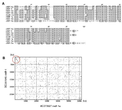 xSDF-1 (BC061945; 2878 bp; X-axis) and xSDF-1α (BC073527; 6182 bp; Y-axis) cDNA. The