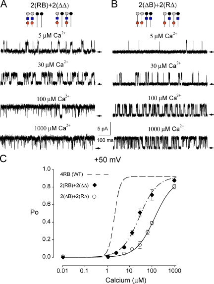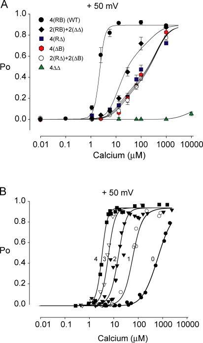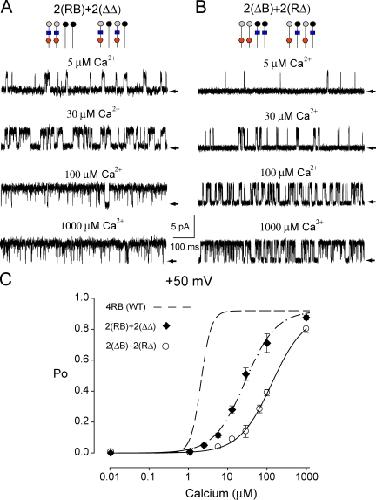 Intra- and intersubunit cooperativity in activation of BK channels by Ca2+.