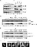 Figure 4. Requirement of Aurora B in the Cdc2-independent chromosomal targeting of condensin I. (A) Interphase extract was depleted with anti-Aurora B (lane 7), anti-Aurora A (lane 8) or anti-Cdc2 antibodies (lane 9). As a standard, 100% (lane 1) of mitotic extract, 100% (lane 2), 50% (lane 3), 25% (lane 4), 12.5% (lane 5) and 6.25% (lane 6) of interphase extract were loaded in parallel. Efficiency of immunodepletion was measured by quantitative immunoblotting using the antibodies indicated. (B) Sperm nuclei were incubated with mitotic extract (lanes 1–4), or interphase extract (lane 5), OA-treated interphase extract (lane 6), OA-treated interphase extract depleted of Aurora B (lane 7), OA-treated interphase extract depleted of Aurora A (lane 8), and OA-treated interphase extract depleted of Cdc2 (lane 9). Chromatin or chromosomes were isolated, and 100% (lanes 1, 5–9), 50% (lane 2), 25% (lane 3) and 12.5% (lane 4) of the samples were blotted by anti-phospho-H3 antibody (upper), anti-XCAP-C (middle) or anti-XCAP-E (lower) antibodies. In the case of blotting with anti-condensin subunit antibodies, a lower amount of samples was used as a standard, namely, 25% (lane 1), 12.5% (lane 2), 6.3% (lane 3) and 3.1% (lane 4). (C) Sperm chromatin was incubated with mitotic extract (a), interphase extract (b), OA-treated interphase extract (c), OA-treated interphase extract depleted of Aurora B (d), OA-treated interphase extract depleted of Aurora A (e) and OA-treated interphase extract depleted of Cdc2 (f). Samples were fixed and stained with Hoechst. |