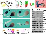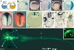 Figure 2. The BCNE Center Contributes to Forebrain and Midline Structures(A) Method used for lineage tracing of the BCNE center with biotin-dextran amine (BDA) labeled grafts.(B) Sagittal section of a recently grafted BCNE at stage 9.(C) Chd mRNA expression at stage 9.(D) BCNE descendants at stage 10.5.(E) Chd mRNA expression at stage 10.5.(F) BCNE center descendants at stage 11.(G) Dorsal view of BCNE descendants at neural plate stage 14.(H) Double staining of transplanted BCNE region with nuclear lacZ mRNA and epidermal ectoderm of the host with epidermal cytokeratin (epi) probe in light red at stage 14.(I) Transverse section at the level of the trunk at stage 16. Abbreviations: fp, floor plate; no, notochord.(J–L) Transverse sections at stage 40. Abbreviations: fp, floor plate; hb, hindbrain; he, heart; le, lens; mb, midbrain; no, notochord; ov, otic vesicle; re, retina.(M) Dorsal view of 6-d embryo transplanted with a BCNE graft from CMV-GFP transgenic embryos. Abbreviations: br, brain; fp, floor plate; on, optic nerve; op, olfactory placode.(N) Side view at 4 d showing labeled retina and brain. Abbreviation: br, brain. |