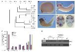Fig. 1 Expression of dkk3 during Xenopus laevis development. (A) Dkk homology tree. Percent protein sequence homology is indicated on the top. (BâF) Whole-mount in situ hybridization of dkk3 during Xenopus development. (B) Neurula stage (stage 17), (C) taibud stage, and (D) tadpole stage. Anterior is to the left. (EâF) Sagittal sections through the regions indicated in (D). (G) Real-time RT-PCR analysis of the indicated genes in Xenopus development. (H) RT-PCR of the indicated genes in dissected Xenopus stage 8 blastulae (D, dorsal; V, ventral explants). cg, cement gland; h, heart; n, notochord; ov, otic vesicle.