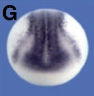 dpysl3-b (dihydropyrimidinase-like 3) gene expression in Xenopus laevis embryo, assayed via in situ hybridization, NF stage 15, anterior view, dorsal up.