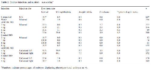 Table 2. Embryo injections and numbers—eye scoring