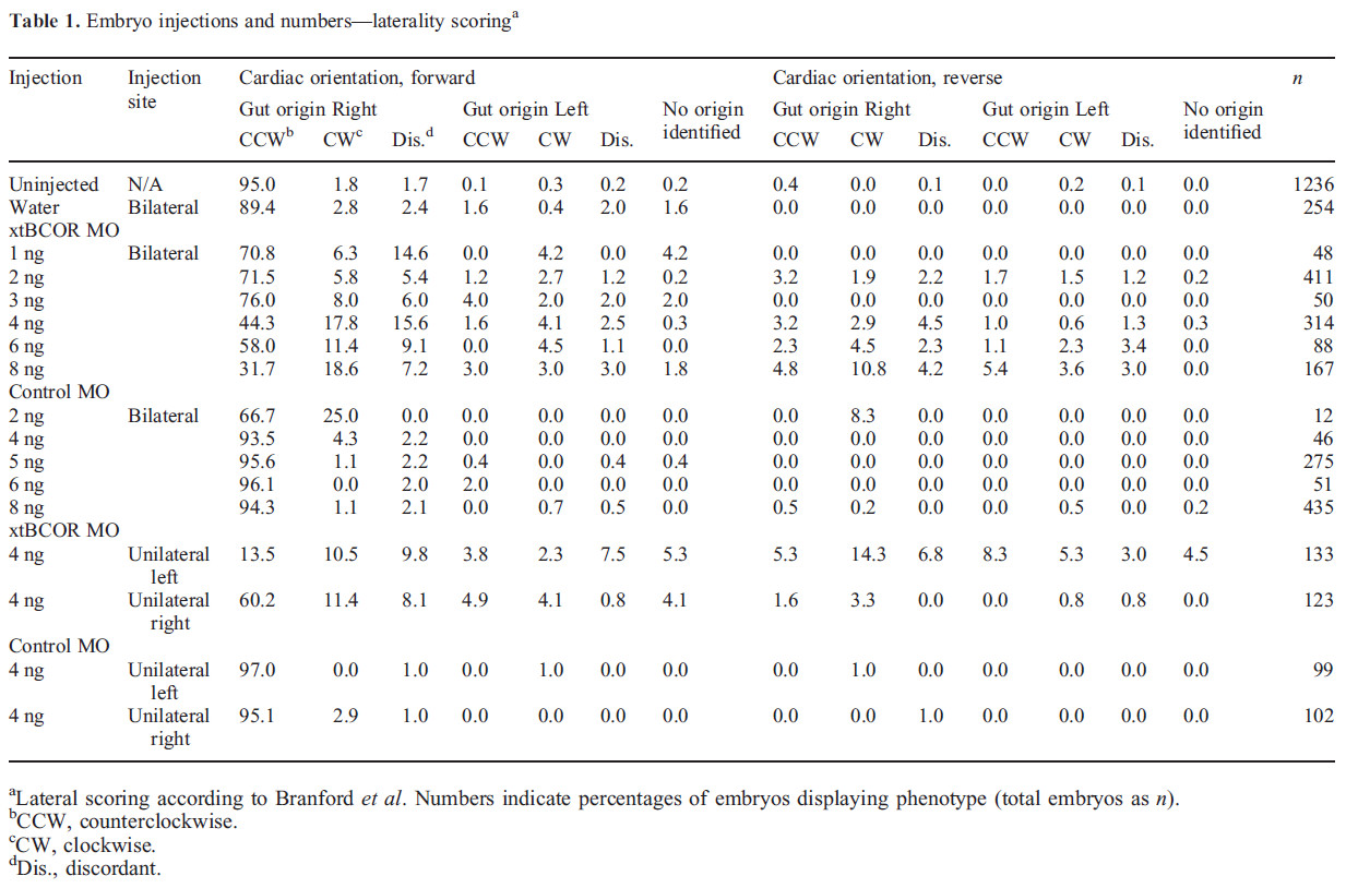 Table 1. Embryo injections and numbers—laterality scoring