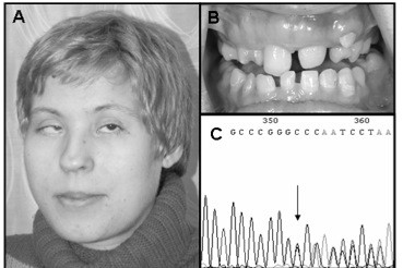 A, B. Clinical features of an OFCD syndrome patient with dextrocardia. Characteristic facial (A), and dental (B) phenotypes were observed.