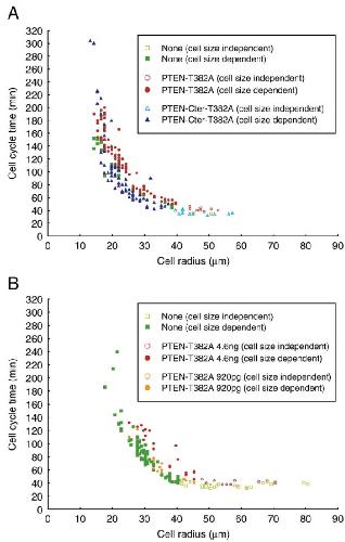 of PTEN activity (PTEN-T382A) enhanced elongation of the cell cycle times