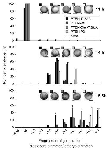 Fig. 4. Alteration of PTEN activity caused a delay in progression of gastrulation.