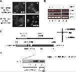 Fig. 2. Smad1 is phosphorylated and gene transcription initiated within half an hour after BMP treatment at stage 8. (A) Immediate transcription of Xvent2, epidermal keratin and msx1 genes is observed within an hour after the BMP treatment in normal embryos. Dissociated cells were exposed to BMP for 20 min, then washed and cultured for the indicated length of time (left panel). Dissociated animal cap cells were incubated in the absence (lane 1) or in the presence of 2 μg/ml of BMP4 for 20 min and cultured for the times shown (right panel, lanes 2, 3 and 4). Xvent2, epidermal keratin and msx1 are expressed within an hour of BMP presentation. EF1α is the loading control. (B) The timing of gene expression after BMP treatment. Left panel, dissociated animal cap cells were collected at stage 8, treated without BMP (lane 1) or with 2 μg/ml BMP for 5 min (samples 2 to 5) or 20 min (samples 6 to 10) and incubated for 0 (lanes 2 and 6), 5 (lanes 3 and 7), 10 (lanes 4 and 8), 20 (lanes 5 and 9) and 30 min (lane 10). Right panel, msx1 starts to be expressed after 20 min of BMP exposure plus 5-min incubation, 30 min in total after BMP presentation (lane 8). ODC is the loading control. (C) Western blot analysis of animal caps from normal embryos, treated with 2 μg/ml of BMP for 20 min. Five animal caps were loaded per lane. Antibodies recognized total or phosphorylated Smad1, αSmad1 or αPSmad1, respectively. Samples were frozen 15 min (lane 2), 30 min (lane 3), 45 min (lane 4), 1 h (lane 5), 2 h (lane 6) and 4 h (lane 7) after BMP treatment. (D) Smad1 activation in Xenopus animal cap cells in the presence of BMP. Left, dissociated animal cap cells were cultured on fibronectin coated slides, treated at stage 8 with 500 ng/ml BMP for either 5 or 20 min and immediately fixed. Cells were then stained with anti-Smad1 and anti-phosphoSmad1 antibodies. After 20 min most of the Smad1 pool is phosphorylated and localized into the nucleus. Scale bar, 30 μm. Right, a line chart to show changes in nuclear and cytoplasmic Smad1 over time. |