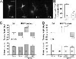 Figure 9. Xenopus TRPC1 coupling the Ca2+–CaN–SSH pathway to BMP7 signaling for growth cone repulsion. (A) Representative fluorescence images of 6- or 20-h cultured Xenopus growth cones stained with a specific antibody against Xenopus TRPC1. (B) Normalized levels of Xenopus TRPC1 expression in Xenopus growth cones of 6- and 20-h cultures. The asterisk indicates statistical significance (*, P < 0.01; t test). (C and D) Mean turning angles (top) and lengths of net extension (bottom) of different groups of growth cones examined in overnight cultures (C) and 4–8-h cultures (D). The bars filled with a pattern show the turning responses switched from the original one (repulsion to attraction in overnight cultures and attraction to repulsion in 4–8-h cultures). Asterisks indicate significant differences from the corresponding control (*, P < 0.01 compared with the control). (B–D) The numbers of growth cones examined in each condition are shown on the bars. Error bars represent SEM. Bar, 10 μm. |