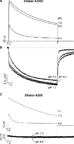 Cha, Characterizing voltage-dependent conformational changes in the Shaker K+ channel with fluorescence. 1997, Pubmed , Xenbase