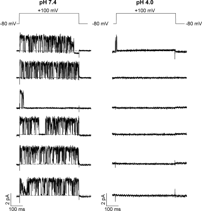 Kwan, Single channel analysis reveals different modes of Kv1.5 gating behavior regulated by changes of external pH. 2006, Pubmed