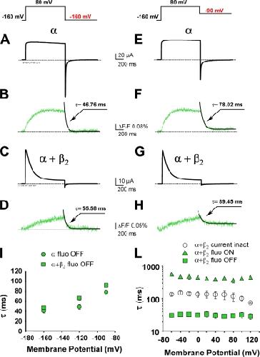 The beta(2) subunit of the large conductance Ca(2+)- and voltage-activated K(+) channel (BK(Ca)) modulates a number of channel functions, such as the apparent Ca(2+)/voltage sensitivity, pharmacological and kinetic properties of the channel. In addition, the N terminus of the beta(2) subunit acts as an inactivating particle that produces a relatively fast inactivation of the ionic conductance. Applying voltage clamp fluorometry to fluorescently labeled human BK(Ca) channels (hSlo), we have investigated the mechanisms of operation of the beta(2) subunit. We found that the leftward shift on the voltage axis of channel activation curves (G(V)) produced by coexpression with beta(2) subunits is associated with a shift in the same direction of the fluorescence vs. voltage curves (F(V)), which are reporting the voltage dependence of the main voltage-sensing region of hSlo (S4-transmembrane domain). In addition, we investigated the inactivating mechanism of the beta(2) subunits by comparing its properties with the ones of the typical N-type inactivation process of Shaker channel. While fluorescence recordings from the inactivated Shaker channels revealed the immobilization of the S4 segments in the active conformation, we did not observe a similar feature in BK(Ca) channels coexpressed with the beta(2) subunit. The experimental observations are consistent with the view that the beta(2) subunit of BK(Ca) channels facilitates channel activation by changing the voltage sensor equilibrium and that the beta(2)-induced inactivation process does not follow a typical N-type mechanism.
