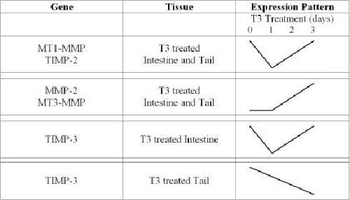 Differential regulation of three thyroid hormone-responsive matrix metalloproteinase genes implicates distinct functions during frog embryogenesis.