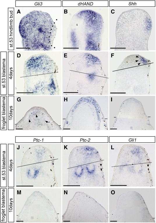 Genes referenced: gli1 gli3 hand2 ptch1 ptch2 shh