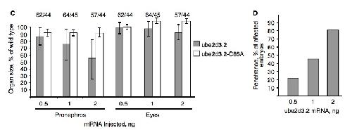 of ube2d3.2 (A) or ube2d3.2C85A (B) mRNA, or with 1.5 pmol of