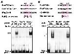 Supplemental Figure S3 (Adobe PDF) Fig. S3. Gel retardation assay showing in vitro binding of Su(H) and Otx2 proteins to the FoxE3 enhancer. The actual probe length was 33 bp, but only sequences around the Su(H) or Otx motif are shown at the top. (A) Labeled probe DNAs were incubated with either glutathione S-transferase (GST, indicated as −) or Xenopus Su(H) protein fused to GST (indicated as +) (Wettstein et al., 1997). A DNA-protein complex (c) was formed with a probe containing the putative Su(H) motif of the FoxE3 enhancer probe FoxE3-Su(H), as well as with a probe containing the previously identified high-affinity Su(H) site of the m8 gene in the Drosophila Enhancer of split cluster probe E(spl) m8 (Tun et al., 1994). The complex was not formed with a mutated FoxE3 probe whose Su(H) site has the same four-base substitution probe FoxE3-Su(H) mt, mutated sequences are underlined as the mutant reporter construct used in the transgenic assay (Fig. 3D, mt7). The m8 probe and Su(H) consensus sequences shown here are the reverse strands of those originally reported (Tun et al., 1994). (B) Labeled probe DNAs were incubated with either the rabbit reticulocyte lysate (TNT Quick Coupled Transcription/Translation System, Promega) programmed with an empty vector (pCS2+) (Turner and Weintraub, 1994) (indicated as −) or that programmed with Xenopus Otx2 expression vector (pCS2+XOtx2; indicated as +). The Otx2 protein formed two shifted complexes (c) with a probe containing the 3′ Otx motif of the FoxE3 enhancer (probe FoxE3-Otx), as well as with a probe containing the previously identified Otx2-binding site of rat gonadotropin-releasing hormone (rGnRH) gene (probe rGnRH-Otx) (Kelley et al., 2000). The shifted complexes were not formed with a mutated FoxE3 probe whose Otx site has the same four-base substitution (probe FoxE3-Otx mt, mutated sequences are underlined) as the mutant reporter construct used in the transgenic assay (Fig. 3D, mt5). The two shifted bands observed are likely to be due to the monomeric and dimeric DNA-binding activity of Otx2 (Briata et al., 1999). Briata, P., Ilengo, C., Bobola, N. and Corte, G. (1999). Binding properties of the human homeodomain protein OTX2 to a DNA target sequence. FEBS Lett.445, 160-164. Kelley, C. G., Lavorgna, G., Clark, M. E., Boncinelli, E. and Mellon, P. L. (2000). The Otx2 homeoprotein regulates expression from the gonadotropin-releasing hormone proximal promoter. Mol. Endocrinol.14, 1246-1256. Turner, D. L. and Weintraub, H. (1994). Expression of achaete-scute homolog 3 in Xenopus embryos converts ectodermal cells to a neural fate. Genes Dev.8, 1434-1447. Wettstein, D. A., Turner, D. L. and Kintner, C. (1997). The Xenopus homolog of Drosophila Suppressor of Hairless mediates Notch signaling during primary neurogenesis. Development124, 693-702. |