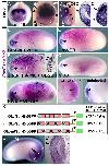 Supplemental Figure S2 (Adobe PDF) Fig. S2. The 462 bp enhancer of Xenopus FoxE3 and the orthologous mouse element drive indistinguishable PLE-specific expression in Xenopus embryos. (A) A representative transgenic embryo (stage 24) generated with a GFP reporter construct where the 462 bp Xenopus enhancer is directly linked to the FoxE3 basal promoter (−640 promoter used in Fig. 1E). (B) A representative transgenic embryo (stage 24) generated with a GFP reporter construct where the orthologous mouse element (423 bp) is directly linked to the FoxE3 basal promoter. Black arrows indicate GFP expression in the PLE detected by in situ hybridization. Numbers of embryos with GFP expression in the PLE and the total number of normally (or near normally) developing embryos injected with the constructs shown on the left are indicated on the right side with percentages of the GFP-positive cases. |