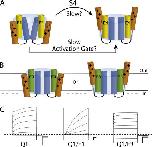 The principle of gating charge movement in a voltage-dependent K+ channel.