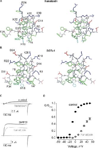 Swartz, Mapping the receptor site for hanatoxin, a gating modifier of voltage-dependent K+ channels. 1997, Pubmed