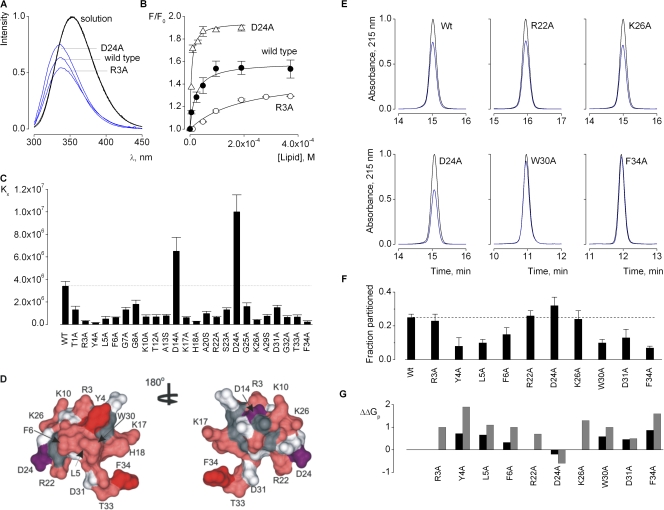 Polozov, Studies of kinetics and equilibrium membrane binding of class A and class L model amphipathic peptides. 1998, Pubmed