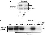 Figure 4. Plx1 deficiency affects Cdc45 loading and Cdk2 activity in the presence of stalled replication forks. (A) Cdc45 and Mcm7 binding to chromatin isolated from extracts that were untreated (CTRL), Plx1 depleted (ΔPlx1) or Plx1 depleted and reconstituted with recombinant Plx1 (+Plx1). All extracts were supplemented with aphidicolin. (B) Nuclear Cdk2 activity measured by monitoring 32P incorporation in histone H1 after immunoprecipitating nuclear Cdk2 with anti-Xenopus Cdk2 antibodies from extracts that were untreated (CTRL), mock depleted (Mock) or Plx1 depleted (ΔPlx1) and treated with and without 50 μM aphidicolin (APH) or 5 mM caffeine (Caff), as indicated.