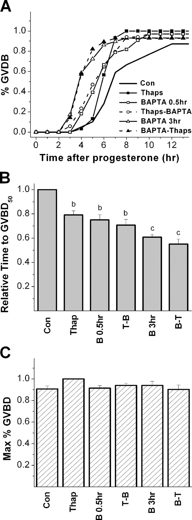 Tombes, Meiosis, egg activation, and nuclear envelope breakdown are differentially reliant on Ca2+, whereas germinal vesicle breakdown is Ca2+ independent in the mouse oocyte. 1992, Pubmed
