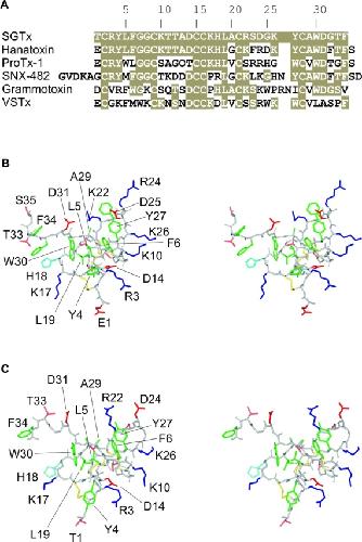 Marvin, Isolation, amino acid sequence and functional assays of SGTx1. The first toxin purified from the venom of the spider scodra griseipes. 1999, Pubmed